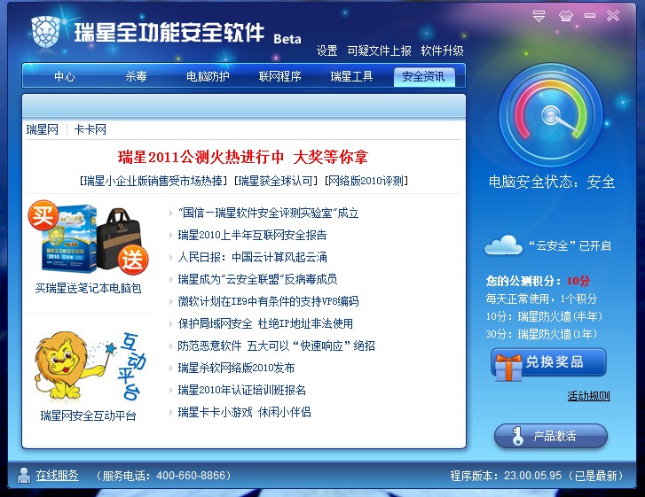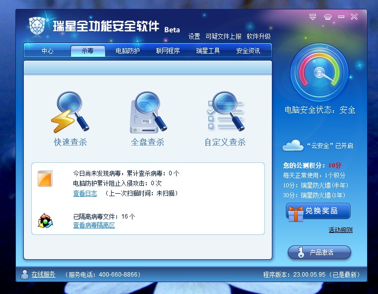 我对瑞星很有感情。我购买的第一款正版软件,就是瑞星杀毒软件2003盒装版,瑞星公司非常厚道,当年199元的售价,却保护了我的电脑5年。我从瑞星2010开始,一直参加瑞星产品公测活动。这一次,就让我继续评测瑞星2011,感受瑞星一年新的进步。因为RIS2011包含了瑞星2011产品的全部功能,所以我的评测以RIS2011为主。