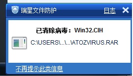 看来瑞星的实时监控很不错嘛。RAR压缩包内的病毒都能第一时间检测到,而且可以清除。只是那个eicar防病毒测试文件没有收录到病毒库。