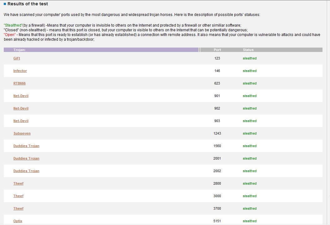 测试网站4(木马端口开放性测试):http://www.pcflank.com/trojans_test1.htm