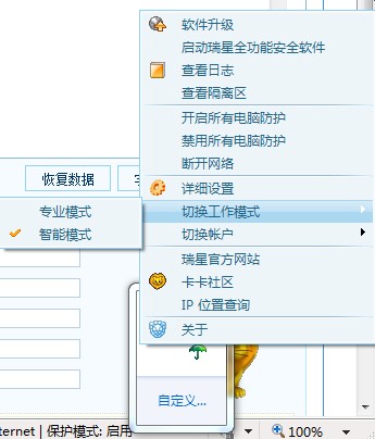 瑞星的工作模式选择,更加精简。使用起来更方便。