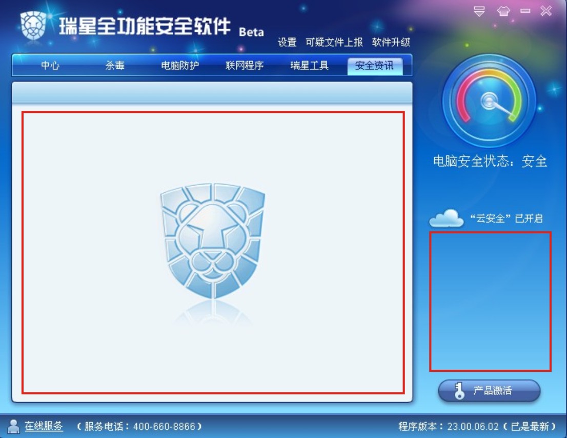 升级到最新版后,瑞星主界面右侧的积分和“安全资讯”所有网页内容全都不显示了
