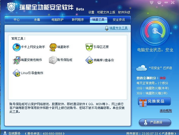 建议把2011瑞星工具与之前版本整合下,没有新的工具.