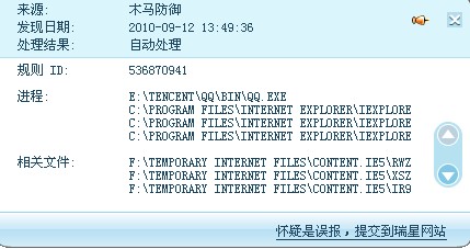 正常浏览IE,突然关闭IE和QQ,弹出拦截框日志如下: