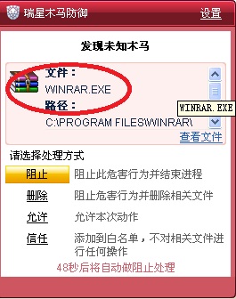 结果: 瑞星行为报警,点击删除后,winrar 被删除!!!