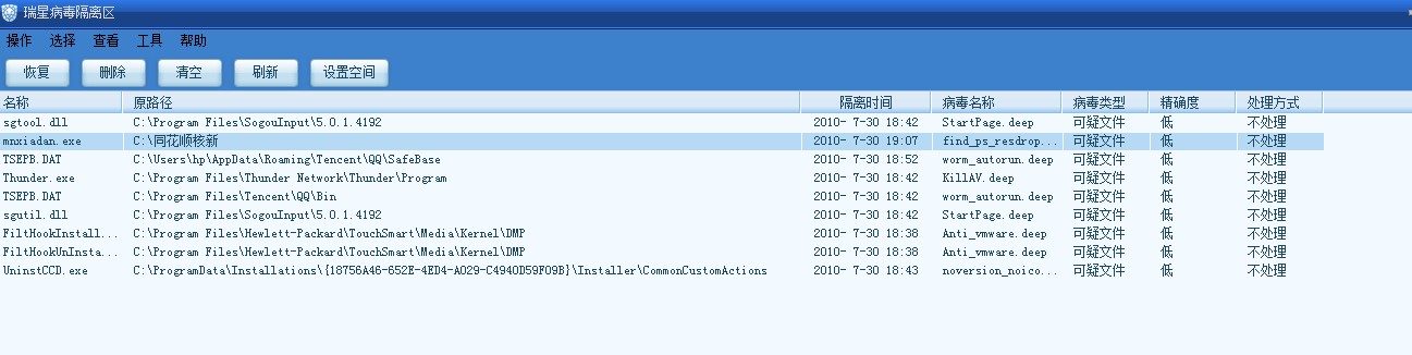 涉及的其它软件版本: 同花顺v4.60.44, 还有迅雷.搜狗. 问题现象: 扫描报毒