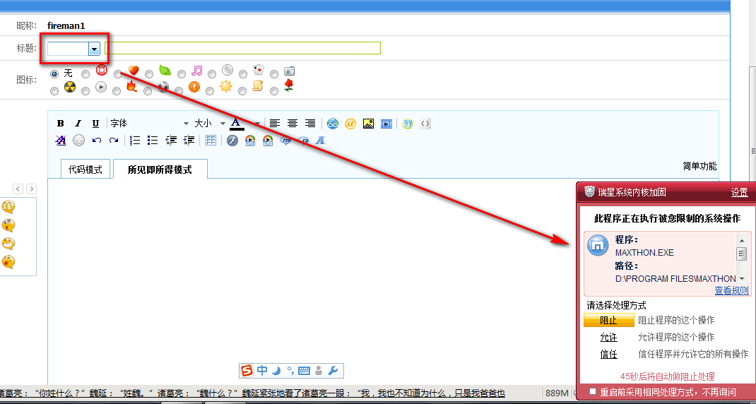 [疑似bug] No6.傲游下,对论坛的下拉框图标有拦截提示