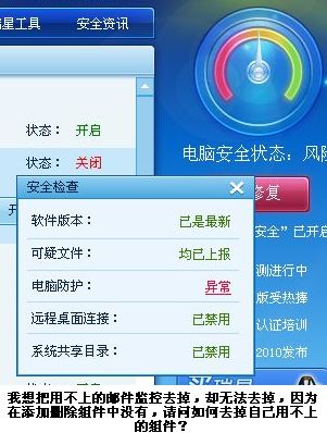 控组件,我想把我用不上的邮件监控模块去掉,但是找来找去也无法去掉,禁用监