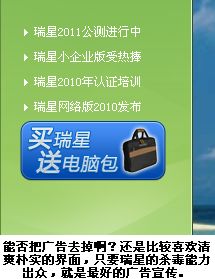 控又影响整个布局美观,希望瑞星能考虑一些高级用户的要求,允许这些用户能