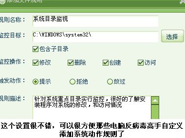 2,主动防御方面做的还不错,对系统目录,注册表等方面的修改都能实时给出提示