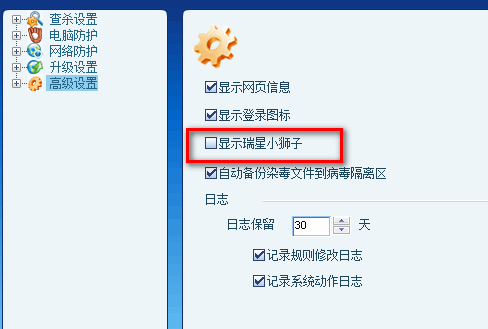 关于一个易用性的建议是:在高级设置中,取消“显示瑞星小狮子”,在应用设置后,小狮子应该自动消失。而不该再手动在狮子上点击退出