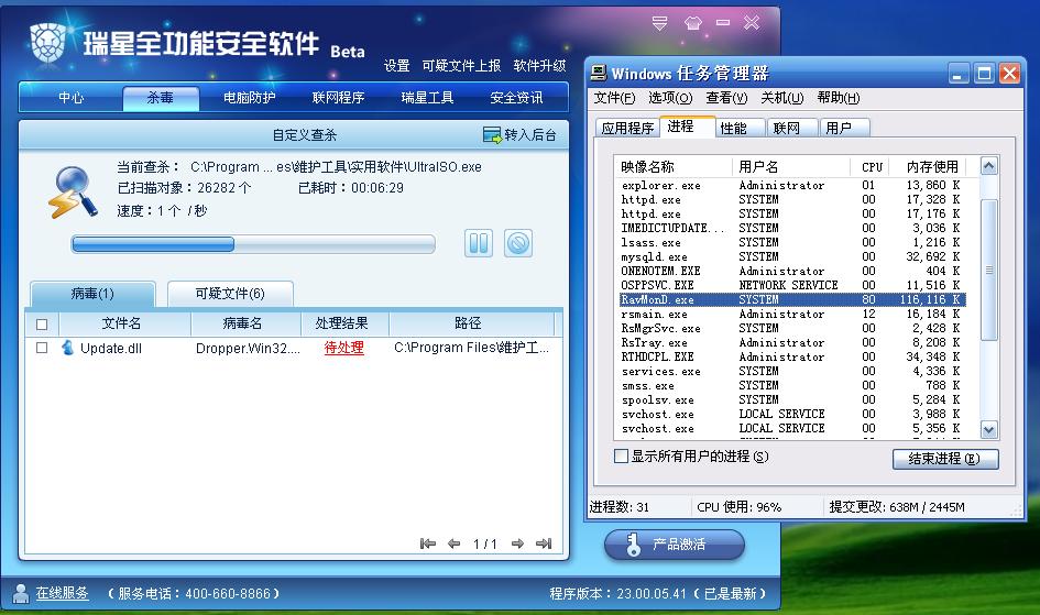 问题现象:在执行查杀时,CPU占用率过高(刚开始杀毒占用40%~50%徘徊,但后来一路升高,在进入后台扫描还要高)