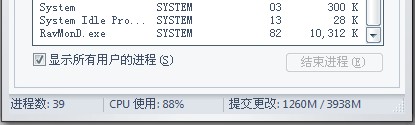开机没全盘杀毒之前没有异常,等我杀完毒之后,RavMonD.exe的cpu占用率一直在60%~99%之间跳
