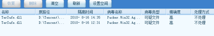 问题二:对于文件监控,和右键扫描方式查出的同一可疑文件存不存在被多次隔离的问题,如果是感觉有点浪费空间