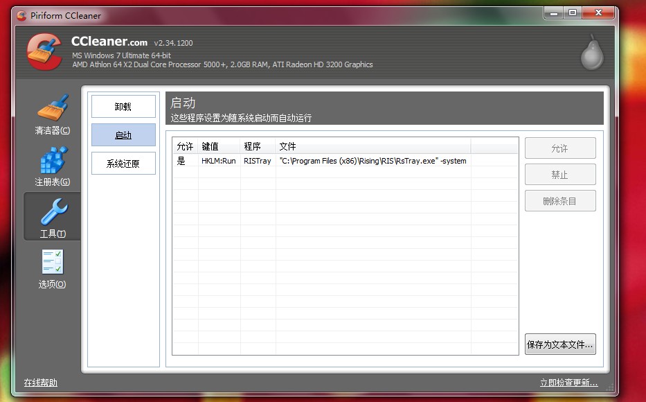 开机自启动项也只有RIS。