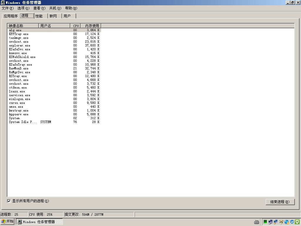 瑞星图标消失时的图象,五分钟都重新未能出现,根本不象是在升级,为方便解决,提供任务管理器的任务。