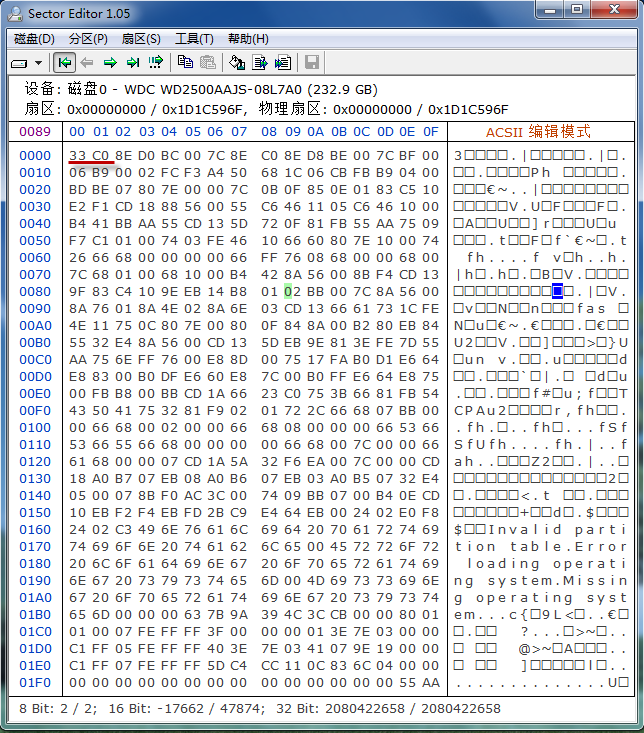 SectorEditor.exe改写前的MBR (Acronis True Image的)