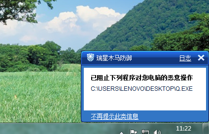 判断依据:右键扫描该病毒文件后,再双击病毒文件,RIS2011 木马防御报: