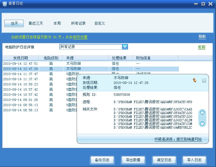 [疑似bug] QQ游戏更新时,瑞星提示发现未知蠕虫