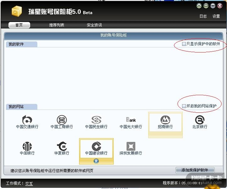 2)两个画圈处让人无法理解,我没有选中,是不是应该显示所有保险柜应该保护的软件呀,纵然我选中也,也还是这些显示,不知道是什么BUG!