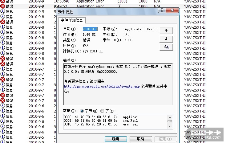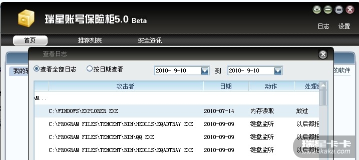 很奇怪在XP环境第一次安装保险柜5的时候,保护界面出现一个没有图标的保护软件(就是空白),点击后保险柜5就崩溃了。查看日记发现竟然有一个7月14号的记录...