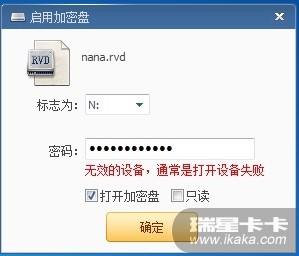 升级版本后打开加密盘错误,提示“无效的设备,通常是打开设备失败”