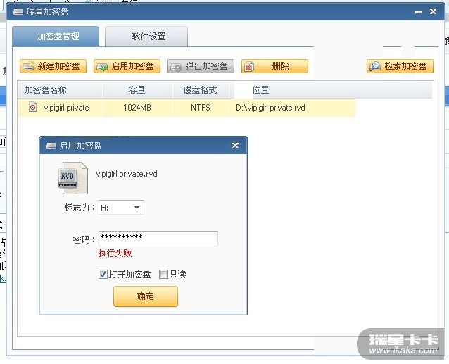 加密盘打开,执行失败!有没有解决办法?幸好没把重要资料放进去,但也有一点用啊,而且我已经把原来的都删除了,真要命!!!