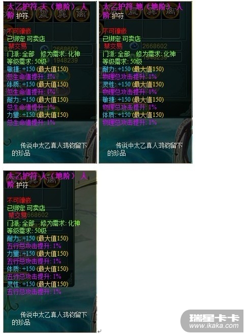 太乙护符:分天、地、人三种,全部属性均为固定属性,不存在变量,重置太乙护符属性将会随机获得其中一种太乙护符