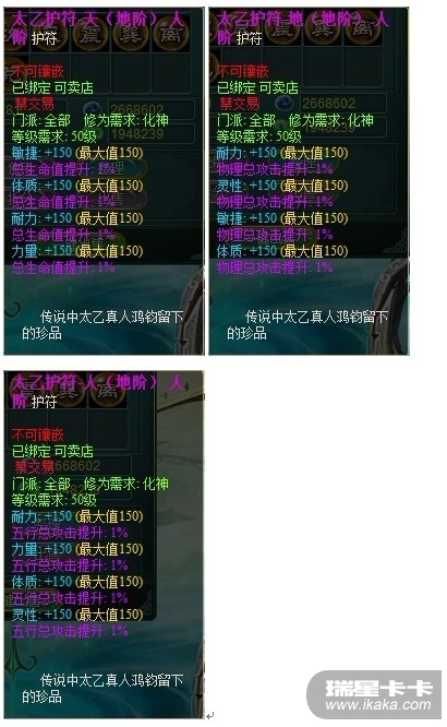 太乙护符:分天、地、人三种,全部属性均为固定属性,不存在变量,重置太乙护符属性将会随机获得其中一种太乙护符