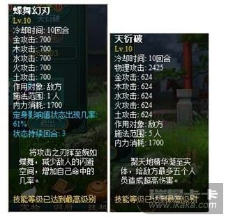 天衍破:技能达到10时,对敌方最多5个角色造成超高伤害(作用角色数量由初始的1,随技能等级的提升,最多可对5个角色造成伤害)