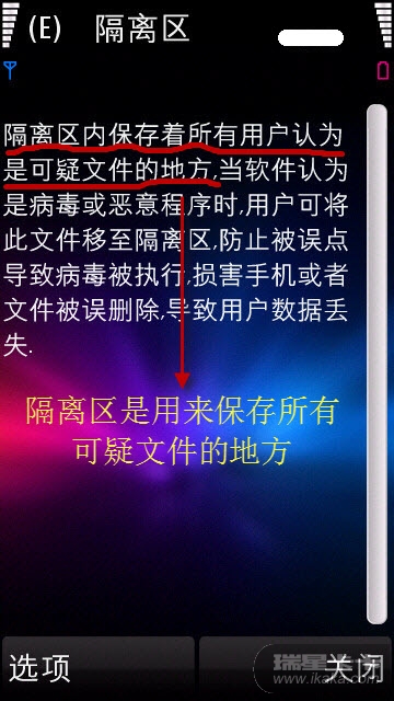 1、你要么说“隔离区是 。。。。。的地方",要么说“隔离区保存着用户认为可疑的文件”