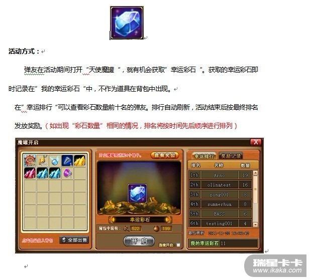活动奖励:活动结束后系统将弹出“幸运彩石奖励兑换“列表,弹友可查看前十排名和奖励物品。奖励在活动结束后将通过邮件发送给各弹友