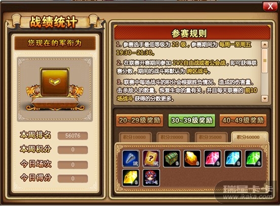 点击“更多”按钮,打开精英赛界面即可查看积分排行及比赛规则。精英赛开启时间为每周六14:00-17:00。只有在精英赛开启时才能创建积分房间。