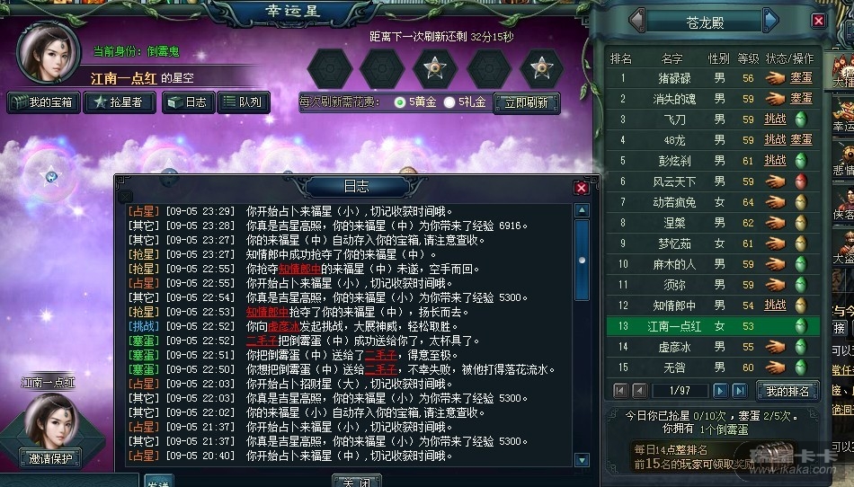 排名12的“知情郎中”可以去抢夺排名13我的“江南一点红”的幸运星了!是你们系统出现错误?还是有玩家用外挂你们查不住?需要明确的答复!并给我赔偿!