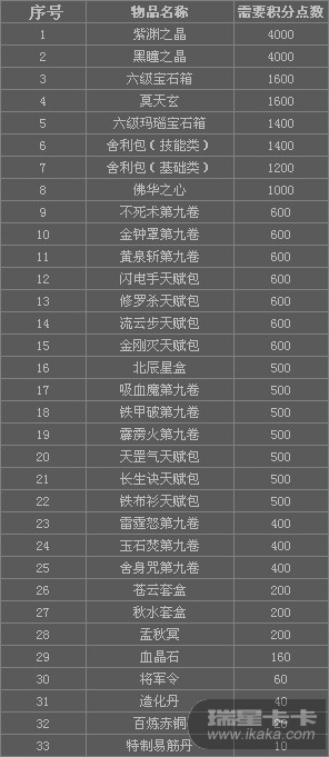5、积分兑换奖励表: