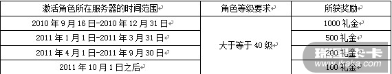 1. 活动期间,角色等级大于等于40级的玩家可以前往活动面板,根据激活角色所在服务器的时间领取相应奖励: