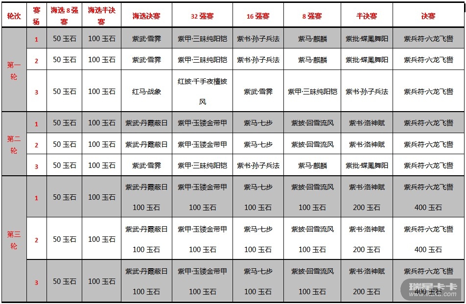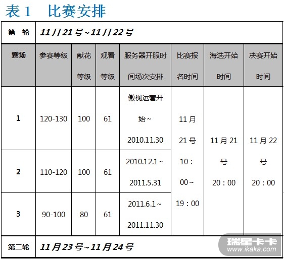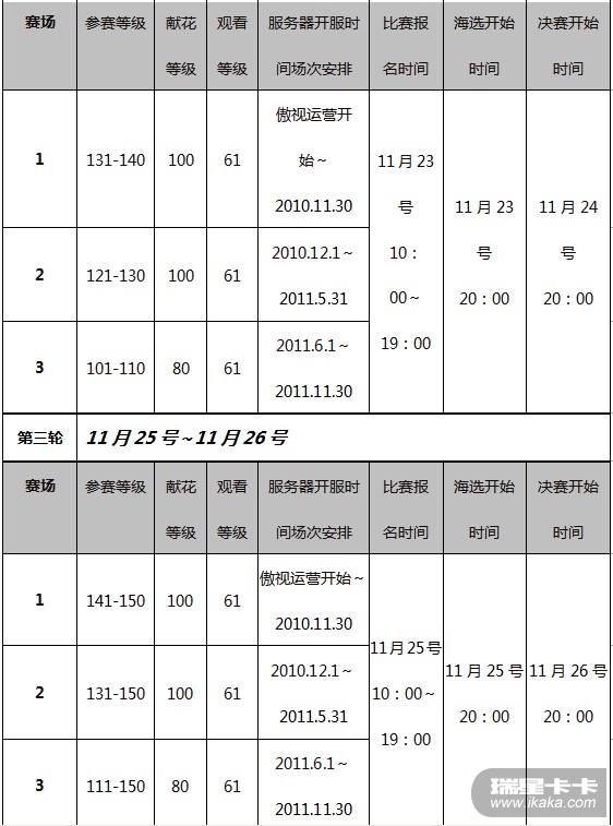 场次安排:根据开服时间分为3个赛场,根据等级分为 3轮。