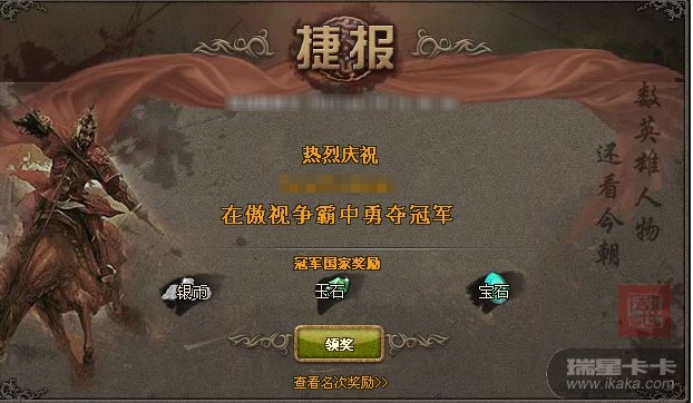 l 根据争霸战最后一轮的名次排行,与参赛者同服同国的玩家会获得对应的不同数量的奖励