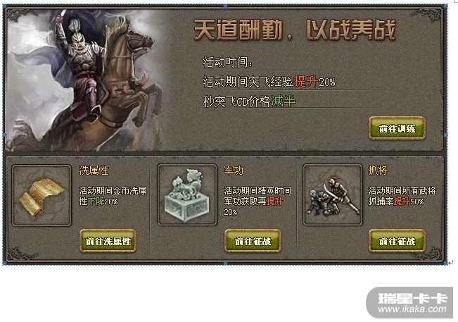 活动期间,所有武将抓捕成功率提升50%。