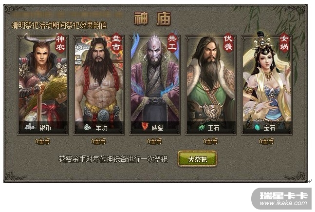 通过祭祀可以获得银币、军功、威望、玉石、宝石,活动期间效果翻倍!