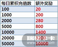 1W,则额外奖励=1400+800+280+200+20=2700金币每日充值累积清空时间:凌晨