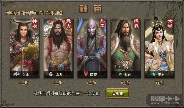 l 通过祭祀可以获得银币、军功、威望、玉石、宝石,活动期间效果翻倍!