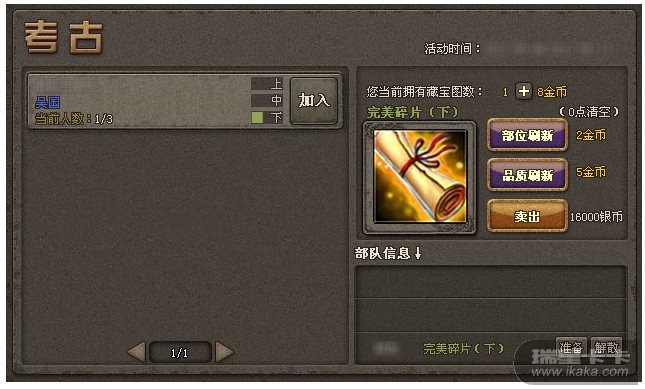 2) 考古必须要组队完成,当队伍中三个碎片都集齐的情况即可完成考古,系统计算给予奖励。