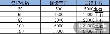 5. 祭祀次数满150次。可额外再获得10000颗1级宝石奖励