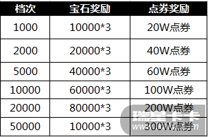 如:充值5000金币获得12W颗1星宝石和60W点券。