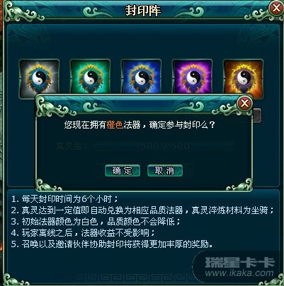 8、玩家每成功邀请一位好友协助封印,封印阵的结算经验+2%,结算机缘+2%;