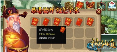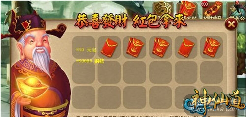 民间传说正月初五是财神的生日,所以过了年初一,接下来最重要的活动就是接财神一一一在财神生日到来的前一天晚上,各家置办酒席,为财神贺辰。所以《神仙道》玩家到了1月27日(大年初五)迎财神的时候,就可以领取并使用所有红包啦!