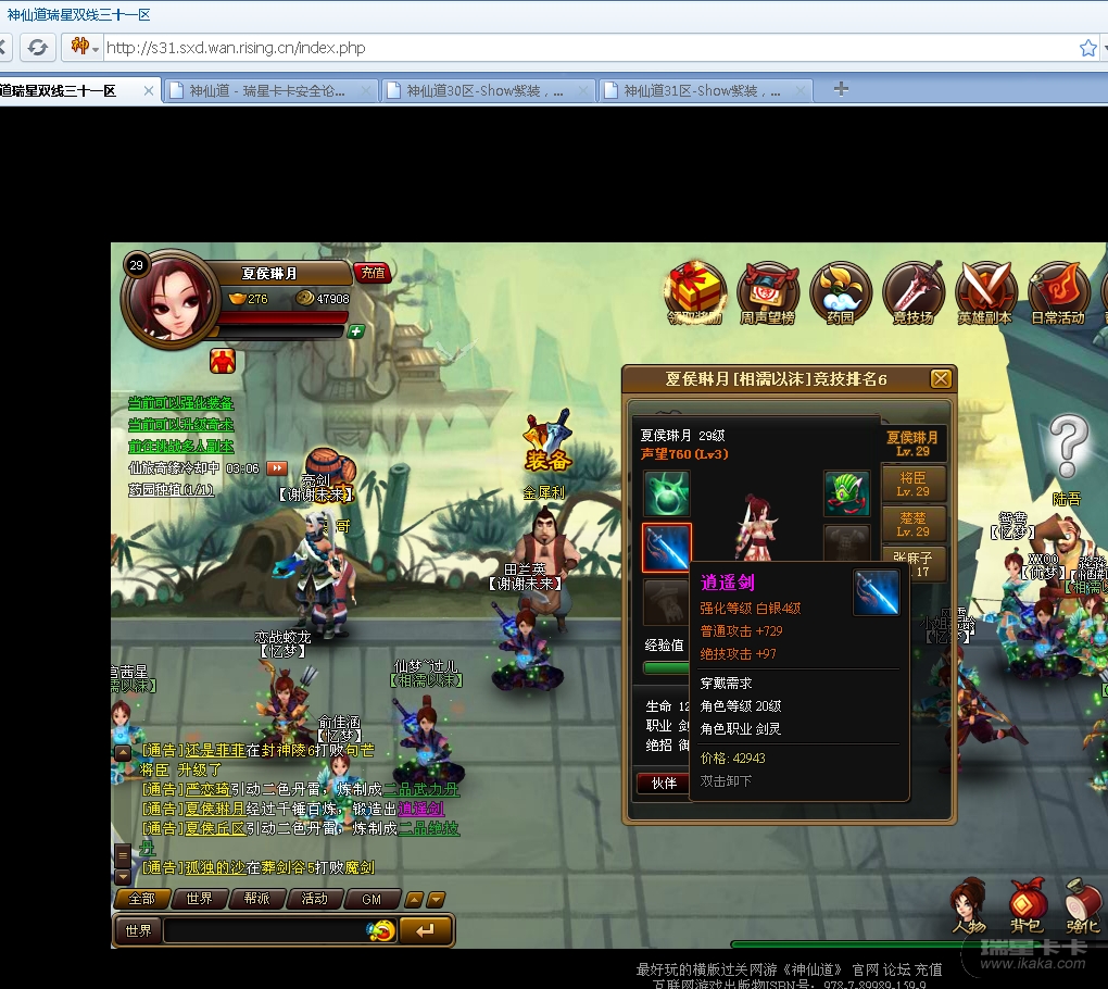 【活动时间】:2012年6月26日15:00至2012年6月28日15:00【活动范围】:神仙道31区【活动形式】:在论坛神仙道专区,相应活动贴中进行回帖,并且发出自己人物角色名称、大区和系统播报获得或者合成20级紫装截图,没有按照要求发帖
