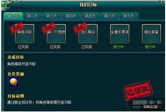 、优化目标系统:调整为按照天数分类目标,目标奖励需要玩家等到天数满足条件才能领取,如:玩家开服第一天完成了第二天的目标,但是奖励需要等到第二天才能领取;