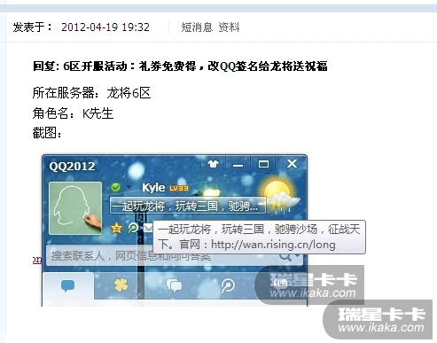 瑞星卡卡安全论坛综合娱乐区瑞星安全游戏龙将 六区QQ签名的活动奖励什么时候发?