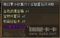 25个奖励星后可领取:金色武魂宝箱x3、极品经验卡x5、3级敏捷天赋石x1。